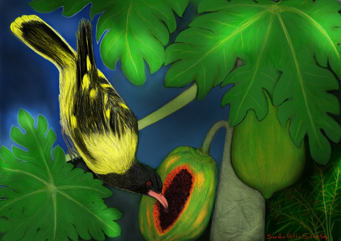 Papaya Dorobo: This is The Black hooded Oriole. Dorobo means robber in Japanese. (09.01.2023)
