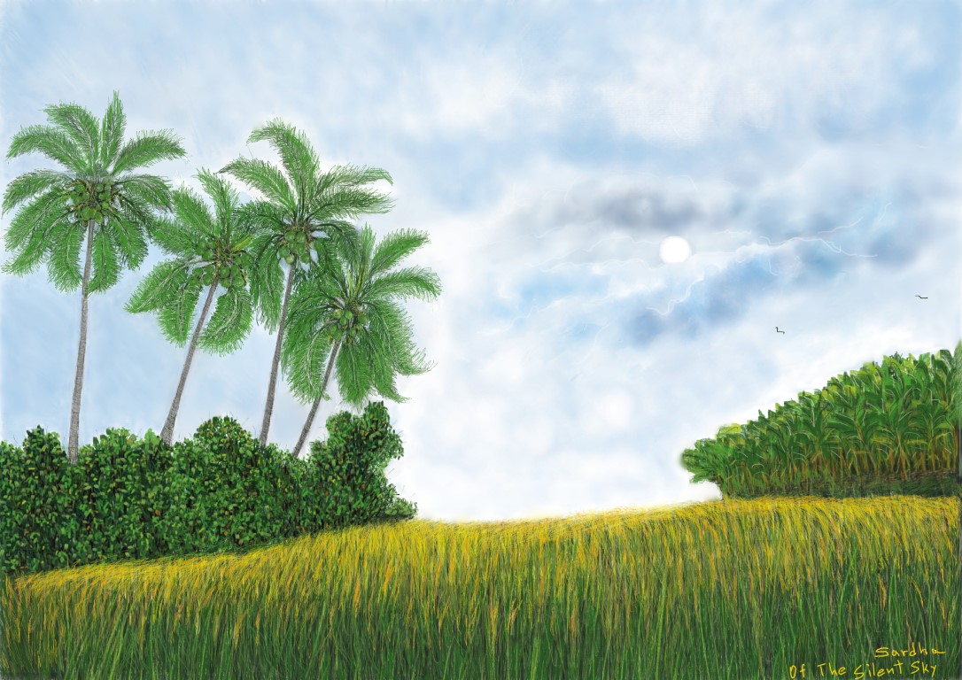 Crossing the Paddy Field: The sun is shining above the clouds making the swaying paddy almost look gold. I am walking the narrow footpath in the Paddy field, holding my head down to avoid the muddy spots. Little insects jumping ahead of me, clearing the way for me. Sorry insects, sorry frogs, you can keep hiding in the grass. I’m just passing by. Life moves slow here, in Sri Lanka (04.07.2021)