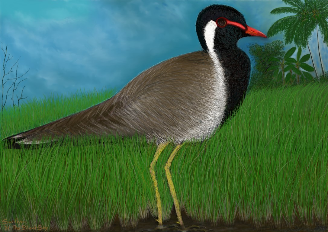 Dorobo/Robber- Alert: This bird is called "Red Wattled Lap Wing”. They live next to the paddy field, I lived in a house in the middle of the land that is next to the paddy fields. Because the house was on the high ground, I could see the paddy fields well from the house, also I could hear what was happening there. They stretched out to the sky. It was very calming, always seeing the paddy field through the window. But night time it was the base for the scary imaginations. These beautiful birds make very loud calls when they see people in their area. When I hear these birds in the middle of the night, it was the warning from my dear birds to me. The scary Imaginations started there; all based on if, if and if. If a Robber is walking in the paddy fields, in the dark, how many minutes will it take the robber to walk to my window? Start counting, keep my eyes fixed at the window, the glass, do not blink. My ears trying to listen to any smallest sound that the robber might mistakenly make! It was so much fear and also exciting! Thanks for the fun my birds. (Dorobo means Robber in Japanese language) (19.01.2023)