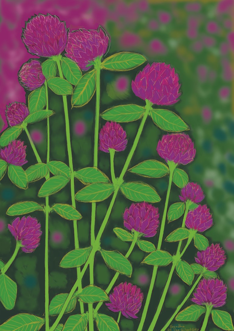 The Gomphrena: This is one of the four kinds of flowers that we planted when I was small. The others are Sulfur cosmos, Marigold and four o'clock flowers. Flowers, flowers, they bring me the colours! (27.03.2022)